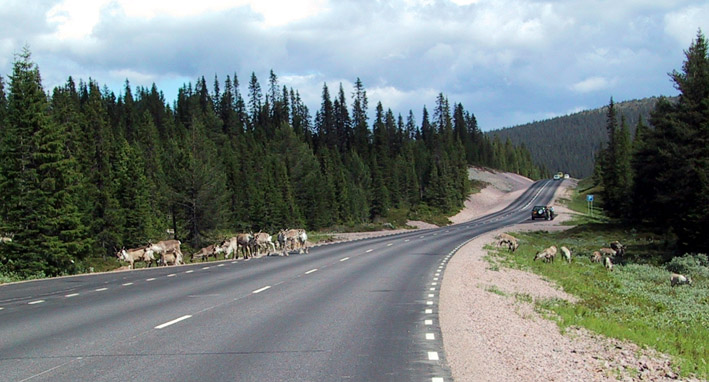 leichten Nieselregen mit einem Trupp Rentieren die urplötzlich auf die